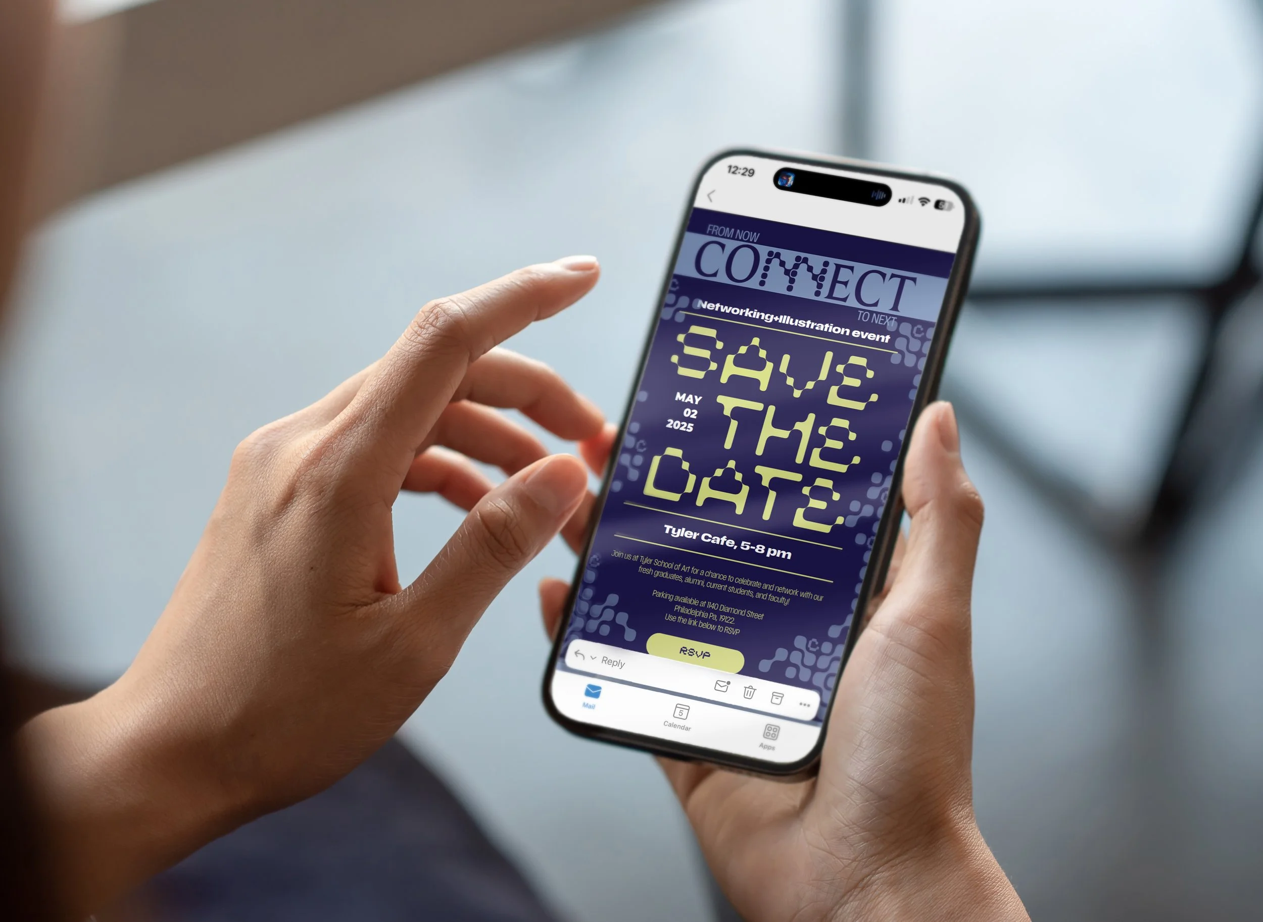 Connect is a semester-long, collaborative branding project for a senior student, faculty, and alumni mixer at Tyler School of Art and Architecture. The event celebrated graduating students, fostered connection, and culminated in an awards presentation. The project encompassed a full visual identity, physical and digital touchpoints, and event logistics. My role focused on digital experience design, including RSVP email design, form-building and data collection systems, and the design of the diplomas presented to graduating students, while also contributing to the broader brand system and event materials.