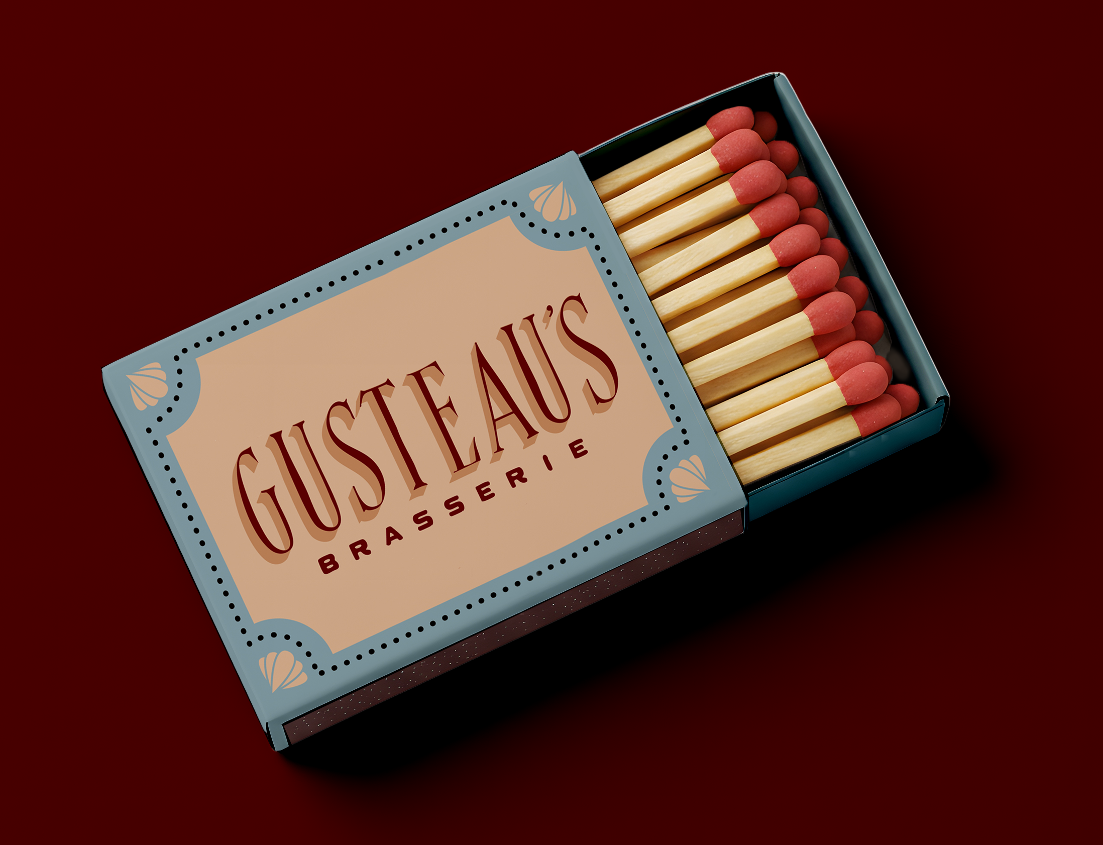 Gusteau’s is rooted in the visual traditions of classic French brasseries, like their ornamented borders, elegant typography, and framed compositions, reinterpreted through a modern lens. The identity balances warmth and structure, using repetition and subtle decorative elements to evoke intimacy. A monogram logo anchors the brand across menus, packaging, and environmental applications, ensuring the space feels considered and enduring.