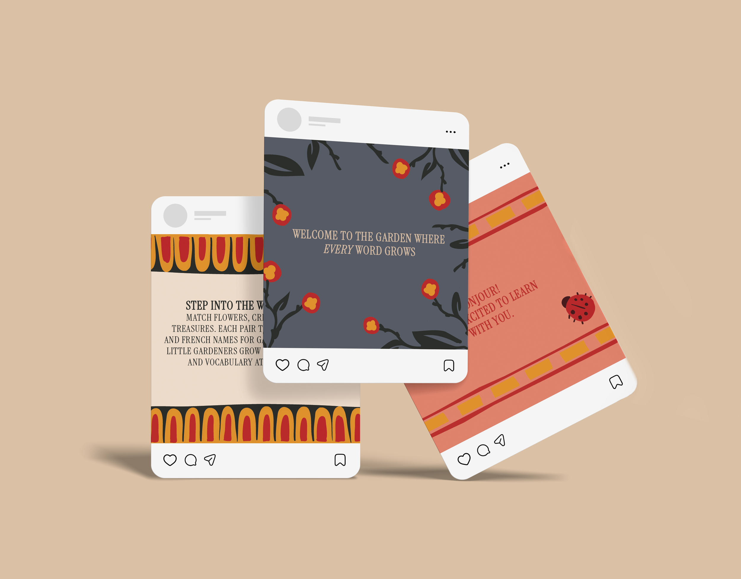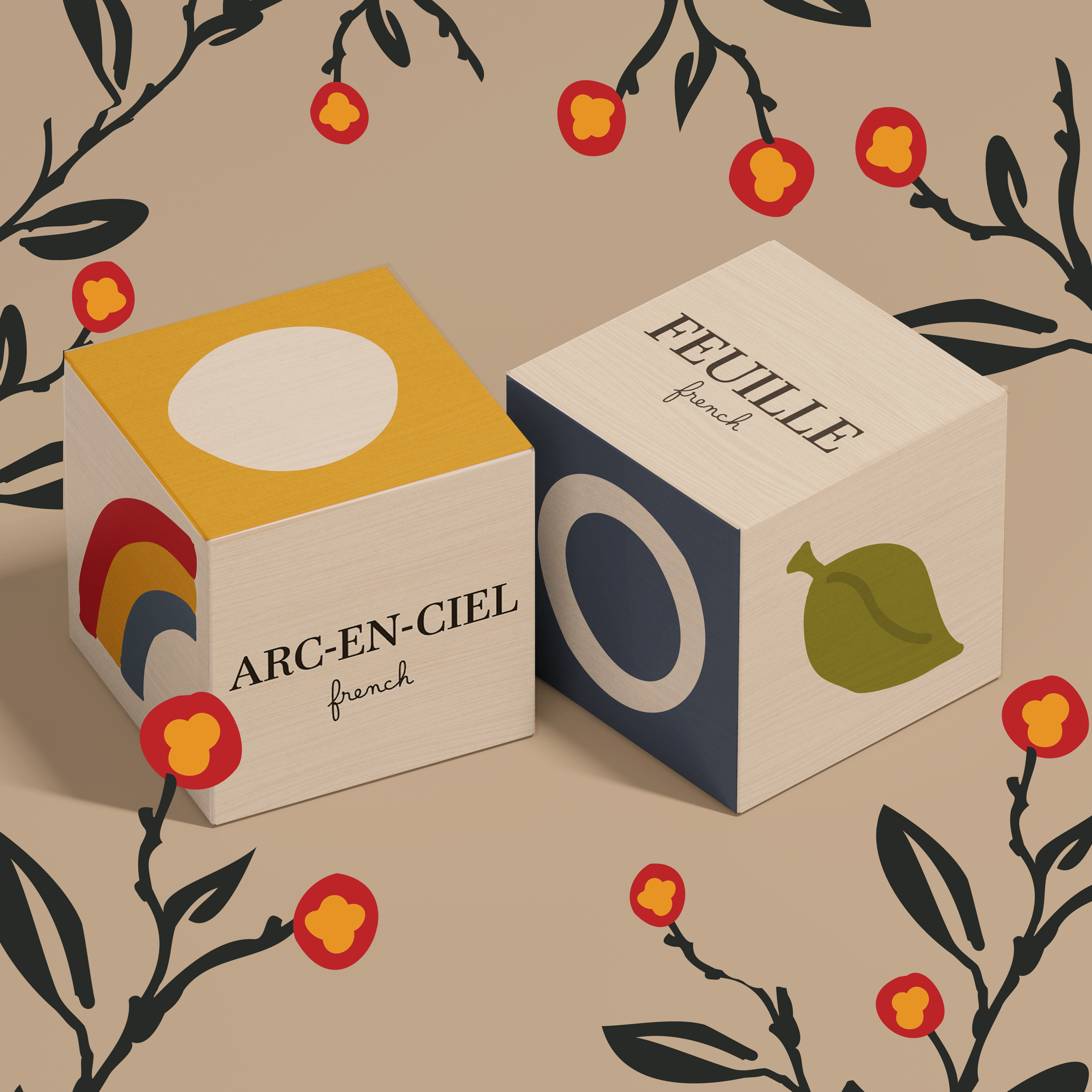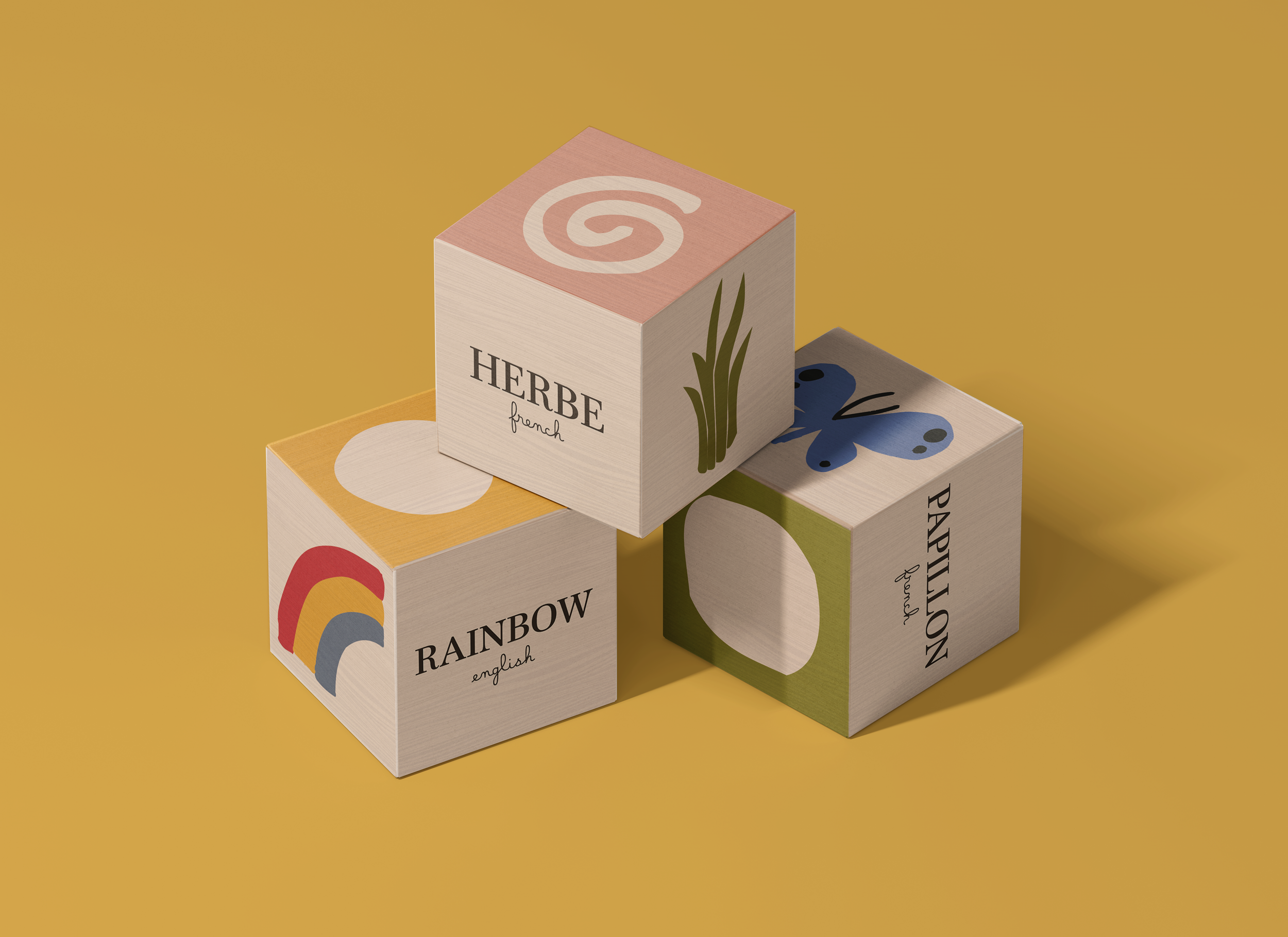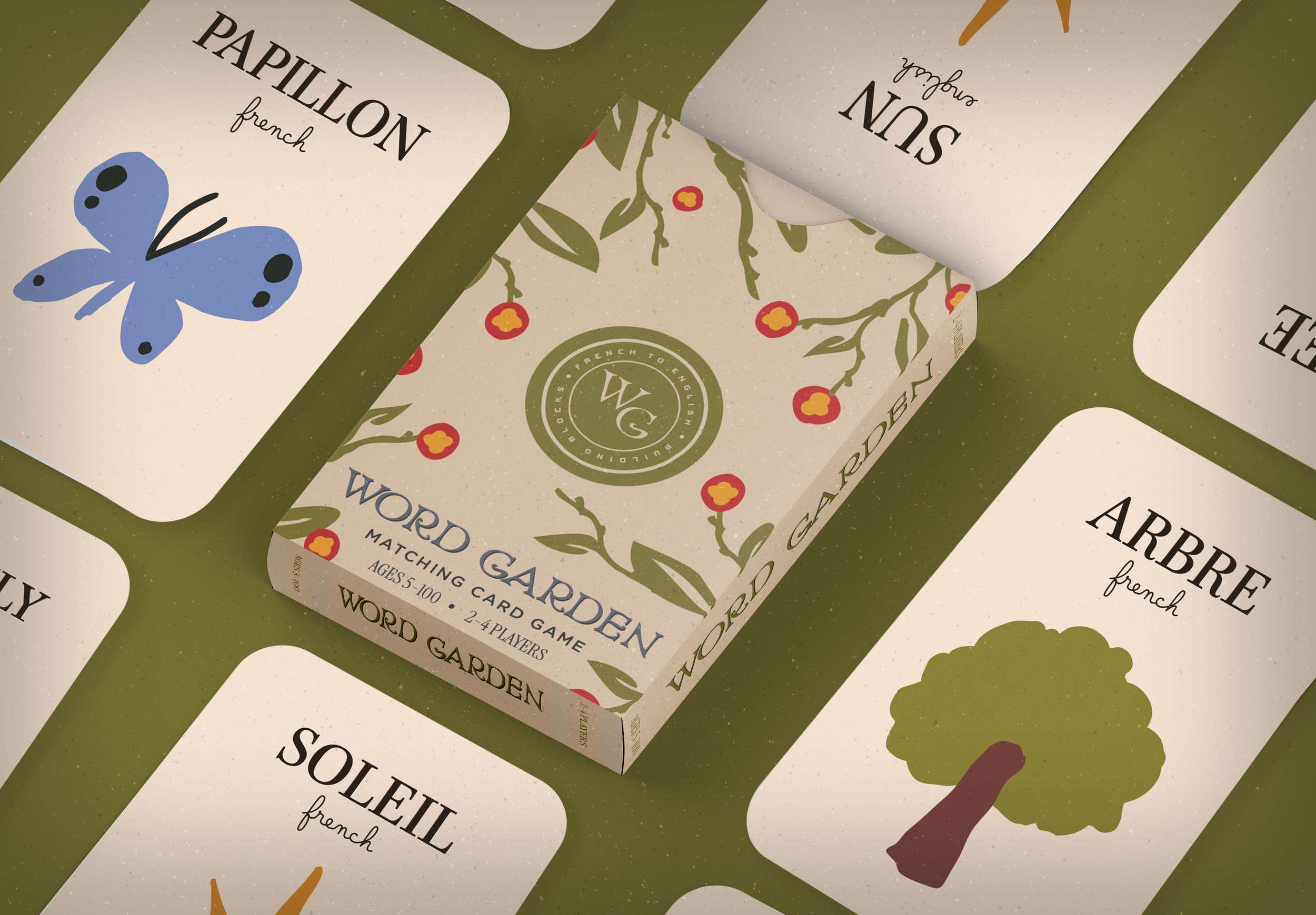 Word Garden is a bilingual, garden-themed language learning toy designed to introduce young learners to French and English vocabulary through play. The project consists of a set of illustrated building blocks paired with a matching card game, encouraging exploration, pattern recognition, and early language development. By combining tactile interaction with a warm, storybook-inspired visual system, Word Garden transforms vocabulary learning into a playful, approachable experience.